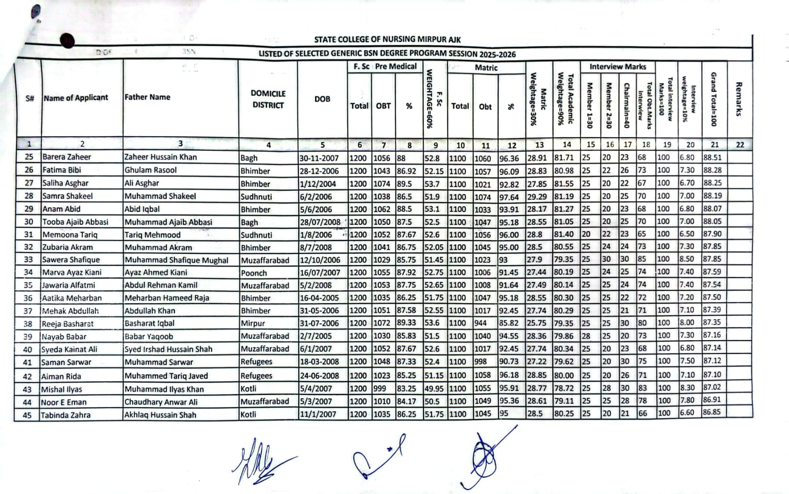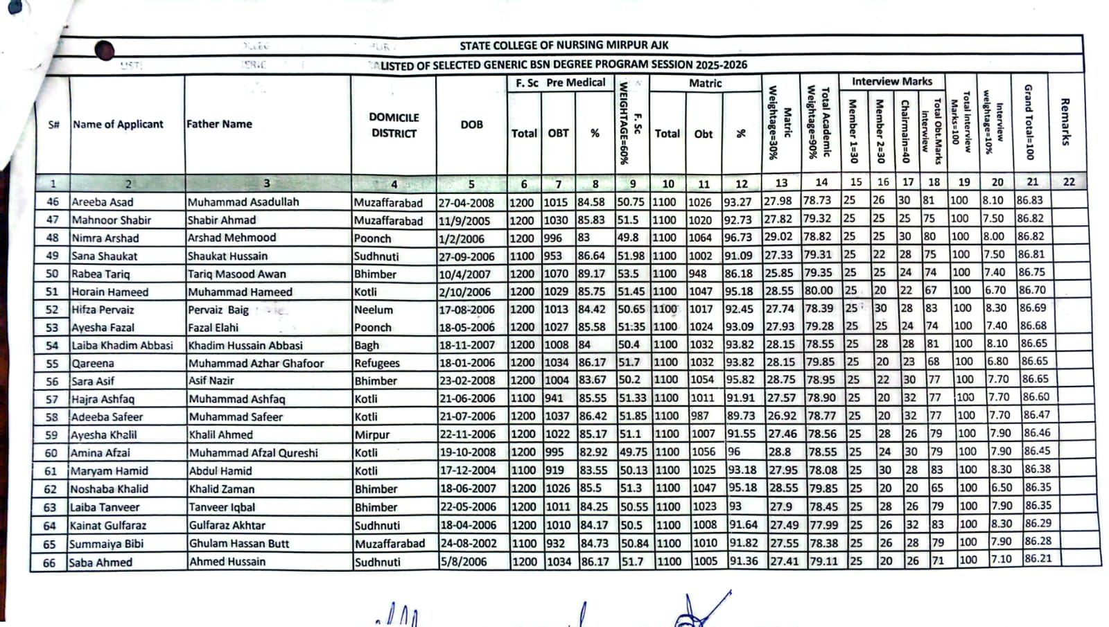 All selected students are informed that those who passed their HSSC (F.Sc) from any board other than the Punjab Board must submit a No Objection Certificate (NOC) for the University of Health Sciences (UHS) from their respective boards.